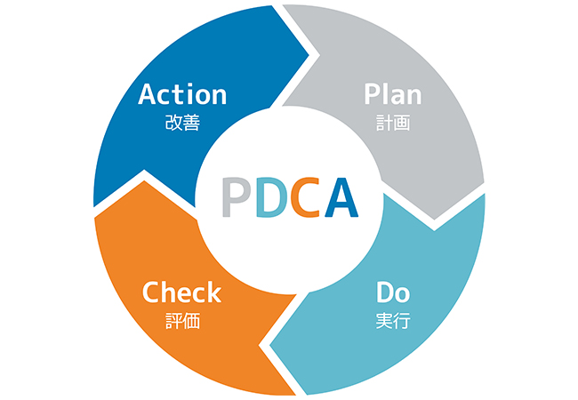 業務を行う際、PDCAの考え方に立てば、計画を立て(P)、実行し(D)、目的とする成果が達成できたかの評価を行い(C)、必要に応じて成果達成に向けた行動をとる(A)ということになります。